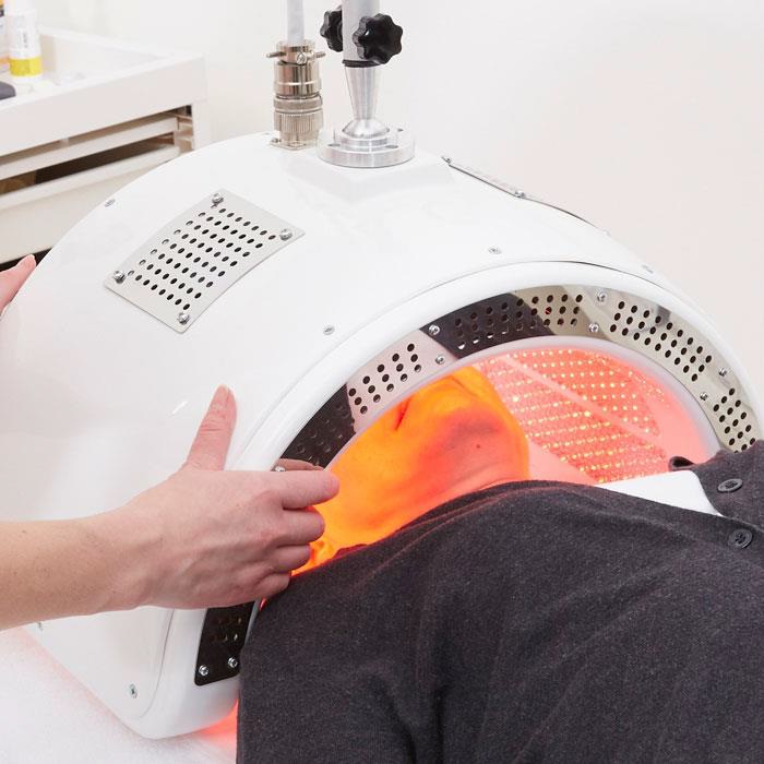 Dermalux™ LED Fototherapie is een pijnloze en relaxerende behandeling zonder hersteltijd. LED fototherapie stimuleert ook een goed gevoel en helpt de alledaagse stress te verminderen.